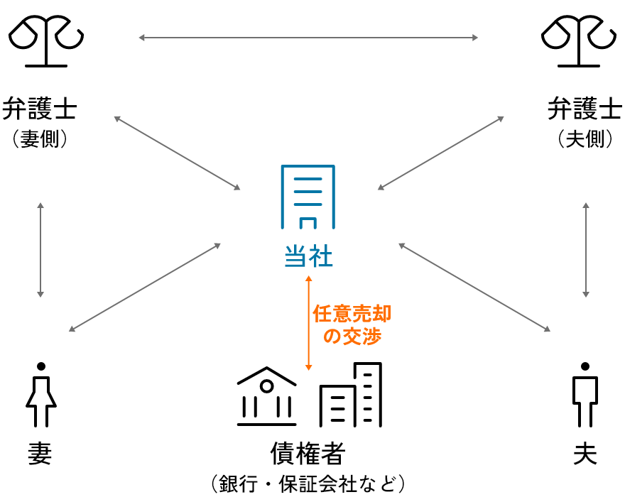 双方に弁護人をたてられた場合でも、当社が間に入り不動産売却を行うことによりスムーズなお取引と取引の透明性をサポートすることができます。